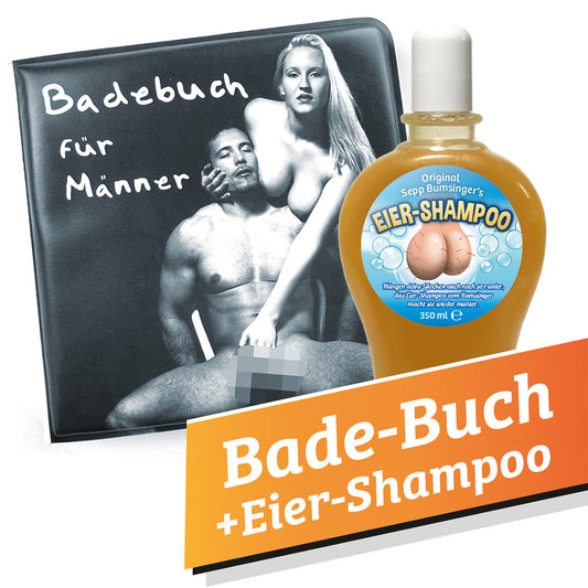 Erotisches Badebuch + Bumsingers Eiershampoo Ei der Daus. Das passt zusammen. Sepp Bumsingers Eiershampoo pflegt...