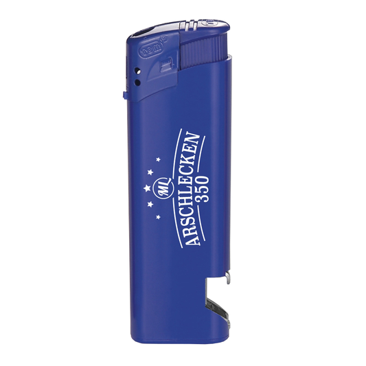 Elektronik Feuerzeug mit integriertem Kapselheber für Kronkorken mit Aufdruck Arschlecken 350  Vom Sepp Bumsinger gibts...