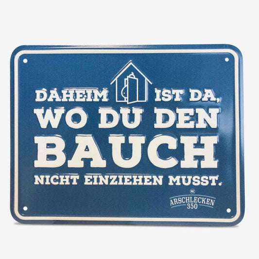 Arschlecken 350 Blechschild Daheim ist da, wo du den Bauch nicht einziehen musst Das blaue Blechschild...