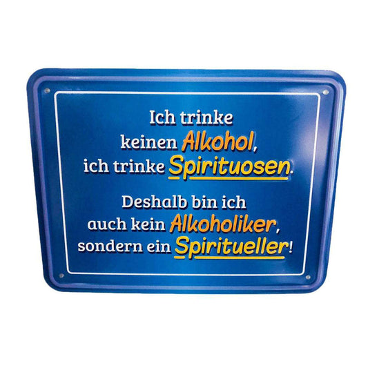 Blechschild Ich trinke keinen Alkohol... Das blaue Blechschild aus Aluminium ist mit dem witzigen Aufdruck Ich trinke...