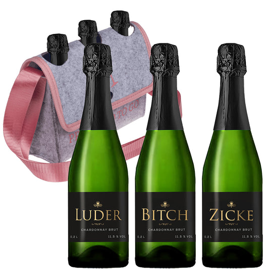 Arschlecken 350 Sweet Sekt im 3er Set mit praktischer Handtasche "Prosecco to go" aus Filz....