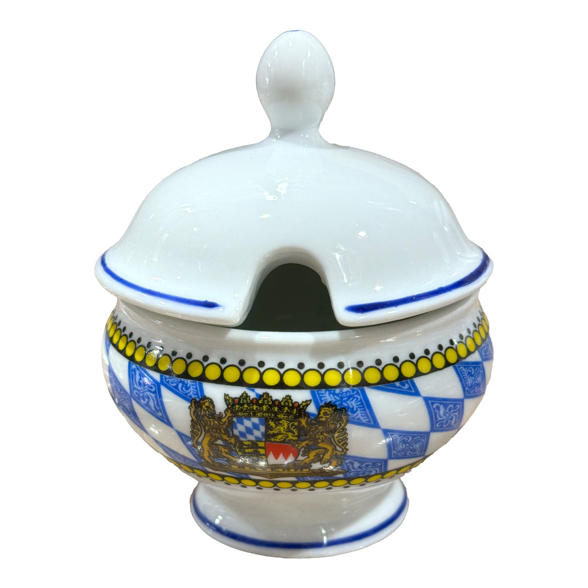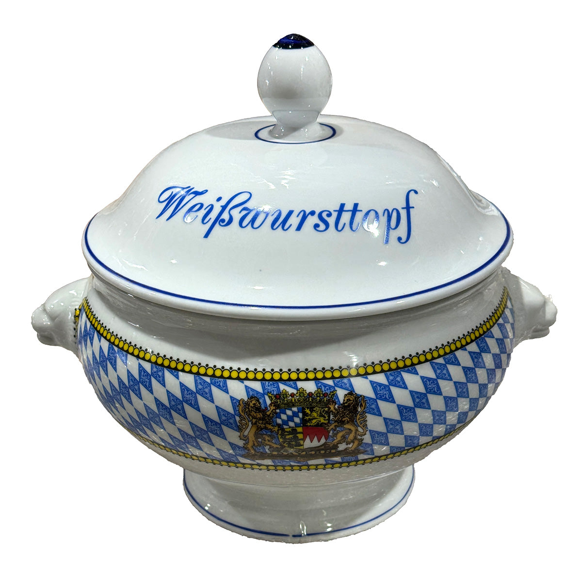 4-teiliges Bayerisches Weißwurst-Set mit Rautenrand bestehend aus Weißwurst-Terrine BZW. Weißwurst-Topf 1l, Senf-Topf und 2 Weißwurst-Tellern