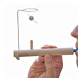 Bei diesem Alkoholtester aus Holz, Kork und Metall braucht es neben einem kräftigen Atem etwas Geschicklichkeit und die bleibt einem bekanntlich nur unter einem gewissen Pegel. Versuchen Sie in das blaue Röhrchen zu blasen und die Korkkugel mit dem Häkchen oben auf den Draht einzuhängen.