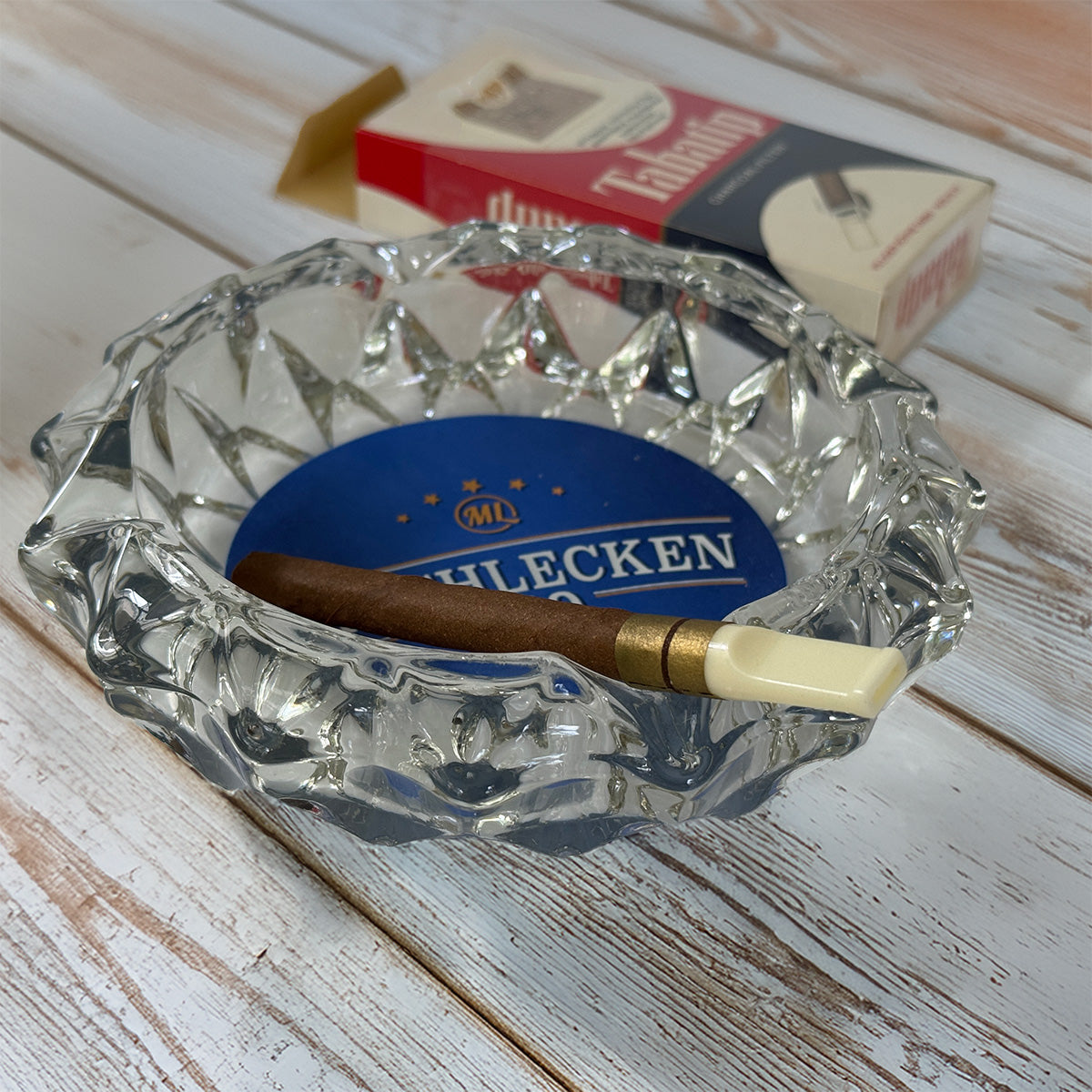 Aschenbecher aus Glas mit Arschlecken 350 Aufdruck