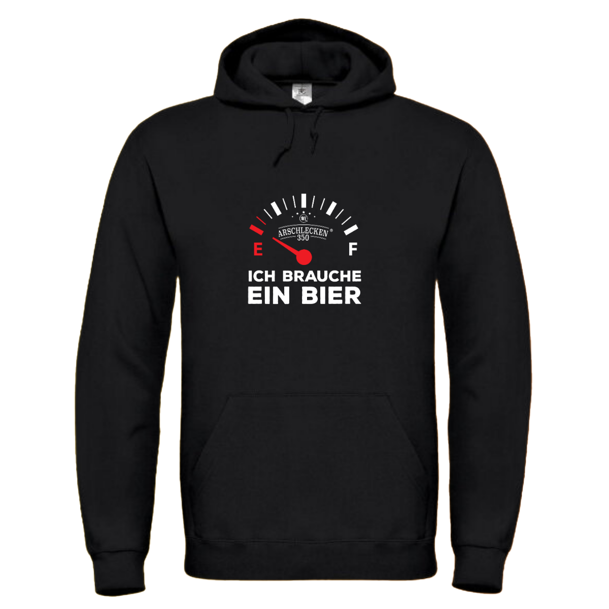 Der Sepp braucht immer ein Bier und seine Fans auch, das hat er schon mitbekommen. Damit seine bessere Hälfte das auch mitbekommt, trägt er ganz gerne den Ich brauche ein Bier Kapuzenpulli. Da ist die Tankanzeige aufgedruckt, dann wird auch seiner Frau klar: der braucht ganz schnell Nachschub. Ein Arschlecken 350.