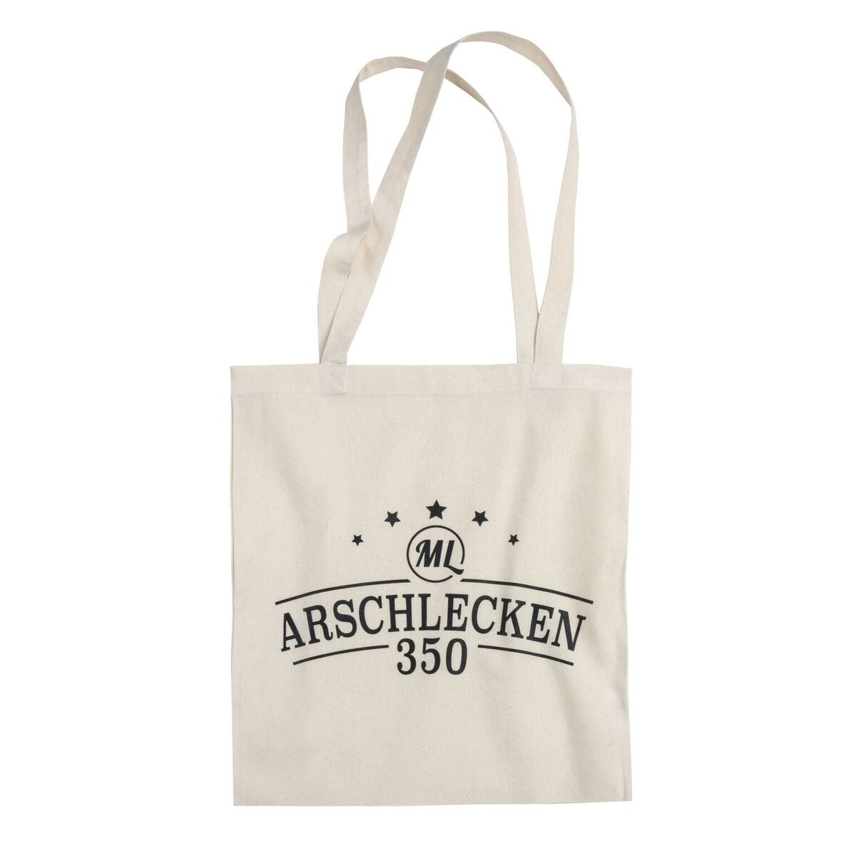 Die Stofftasche ist aus 100% Baumwolle gefertigt und ist in der Farbe beige erhältlich. Die Henkellänge beträgt 70 cm. Die Größe des Beutels beträgt ca. 38 x 42 cm. Sie ist bei bis zu 30° maschinenwaschbar und kann auf Stufe 1 gebügelt werden. Natürlich hat sie den Aufdruck Arschlecken 350 vorne aufgedruckt. Deswegen bitte auch auf links waschen und bügeln.