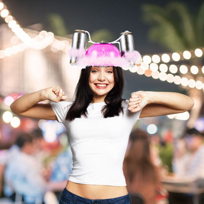 Arschlecken 350 Bierhelm Pink mit Federboa